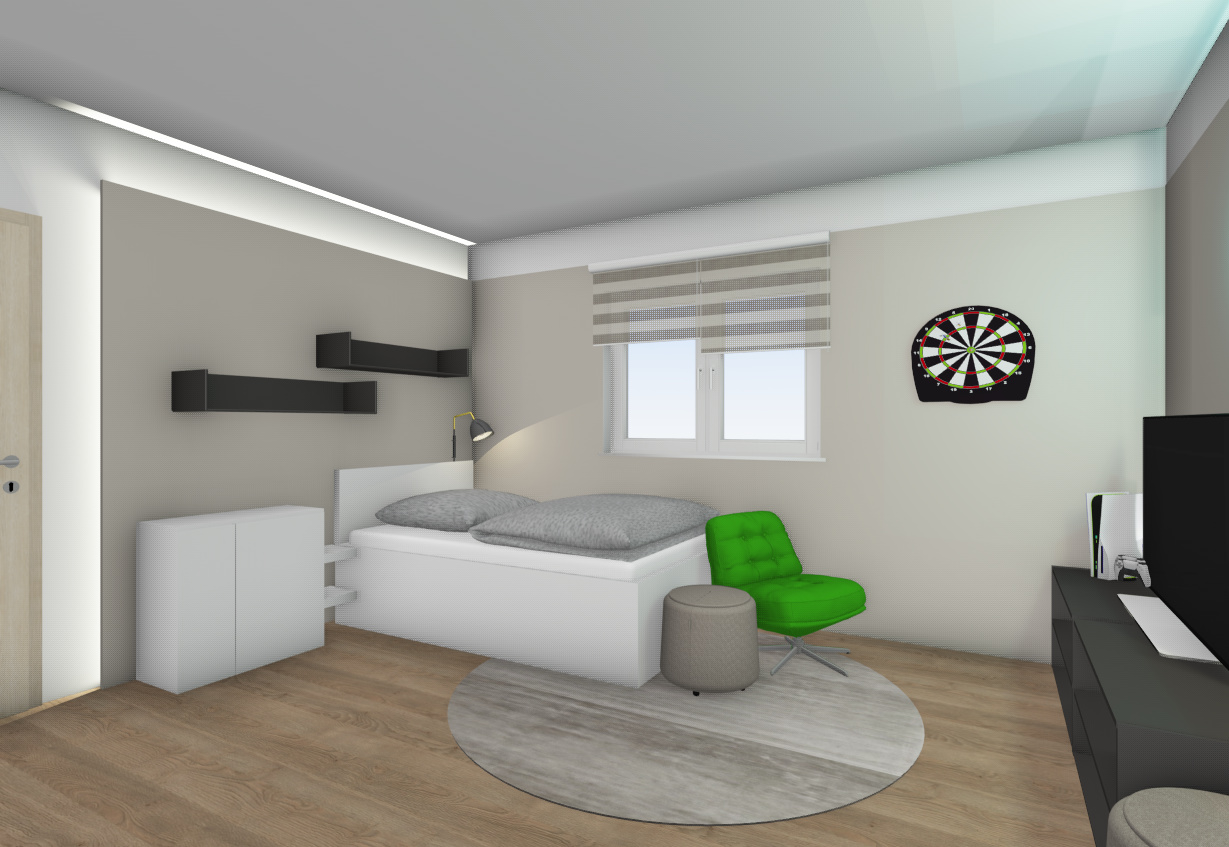 Unsere Schwierigkeit bestand darin, eine Vorstellung davon zu bekommen, wie ein Jugendzimmer eingerichtet werden kann, dass die Funktionen Schlaf-, Wohn- und Arbeitsbereich vereint und doch zum Verweilen einlädt. Und jeder von uns hatte seine Ideen, die der jeweils andere auch verstehen musste. Du hast sie visualisiert und auf einen Nenner gebracht! Du hast einen Gestaltungsplan vorlegt, auf den wir selbst nie gekommen wären und den wir 1:1 umsetzen werden.