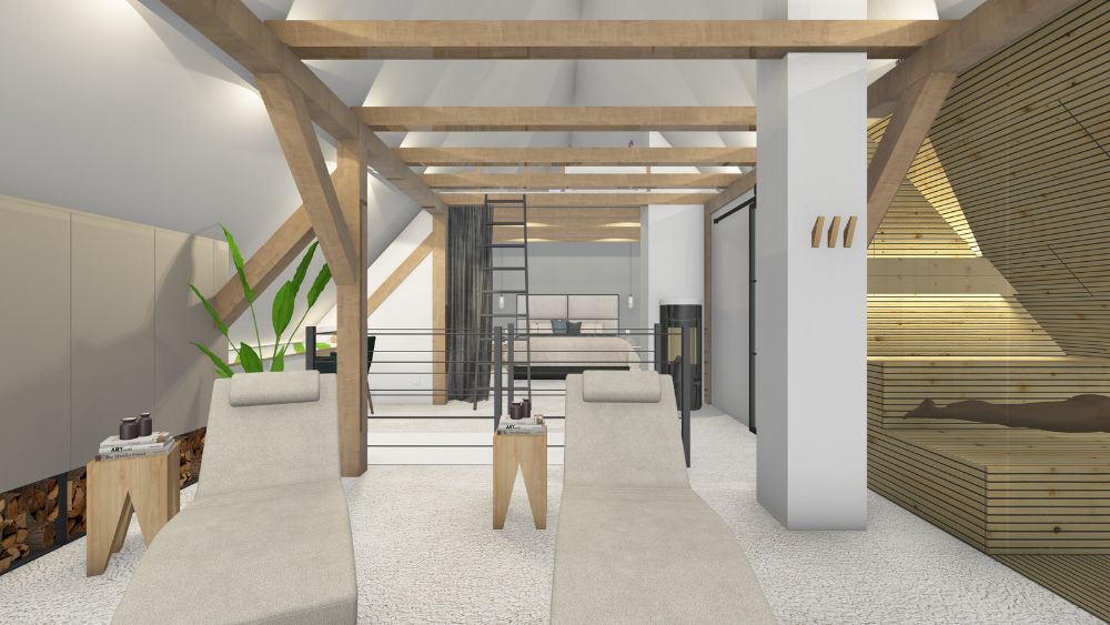Mit diesen Worten haben sich die Eltern zweier Kinder an mich gewendet. Für ihren unausgebauten Dachboden hatten sie klare Vorstellungen: ein Schlafzimmer mit Ankleide, ein Bad mit Dusche, eine kleine Arbeitsecke, eine Sauna mit Liegemöglichkeit, etwas Stauraum und einen Mini-Gästebereich.